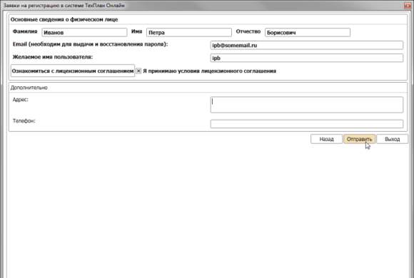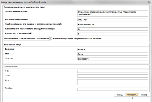 Демо-аккаунт предназначен только для ознакомления с возможностями системы. В нем нельзя изменять параметры профиля. Не используйте его для подготовки реальных технических планов, т.к. вводимые данные общедоступны и периодически удаляются из системы. Для реальной работы пройдите регистрацию и получите личную учетную запись в системе.