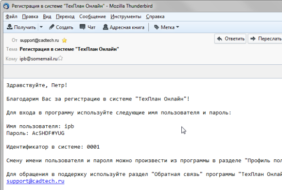 Дождитесь письма с подтверждением регистрации и учетными данными. Письмо будет доставлено на указанный при регистрации адрес электронной почты.